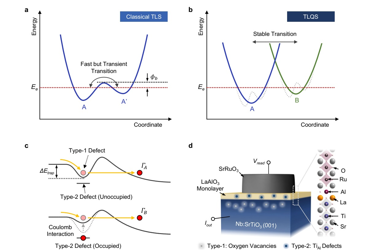 Conventional TLQS systems—typically based on Random Telegraph Noise (RTN) caused by charge trapping at defect sites—have struggled with instability due to environmental dependencies. To overcome this, the team intentionally introduced a dual-defect system comprising oxygen vacancies (V_O) and antisite Ti defects (Ti_Al). Their interaction induces discrete fluctuations in tunneling current that are minimally affected by external conditions.