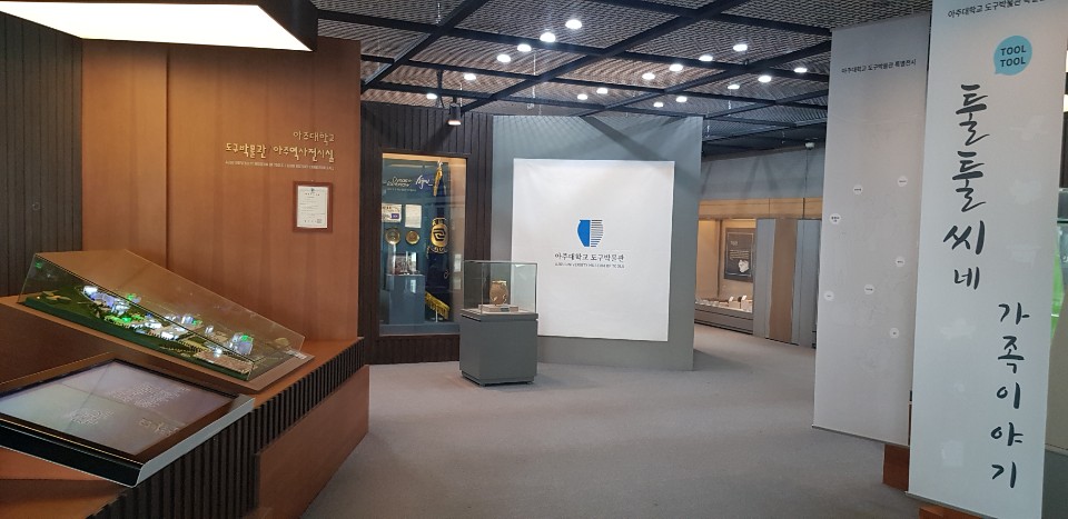 우리 박물관은 11월 5일 연암관 1층 박물관 전시실에서 특별전시 ‘툴툴씨네 가족이야기’ 전시 개막식을 진행 했다. 이번 특별전시는 경기도 지역의 문화예술 활성화를 위해 경기도와 수원시에서 지원하는 ‘2019 지역문화예술 플랫폼 육성사업’으로 아주대학교 도구박물관은 소장하고 있는 ‘도구’를 중심으로 한 특별전시를 진행한다.‘툴툴씨네 가족이야기’는 도구의 영문 표현인 ‘Tool(툴)’에서 이름을 딴, ‘툴툴씨’라는 인물의 3대 가족을 중심으로 조선시대 한 집안과, 시장의 모습이 연출 전시된다. 전시는 도구가 각기 어떻게 활용되는지 쓰임의 모습을 전시하여 관람객들의 이해와 재미를 도울 수 있도록 하였다. 또, 활동지가 비치되어 있어 전시 내용을 깊이 있게 학습할 수도 있다. 개막식은 박형주 총장의 인사말로 시작 되었으며, 이상국 박물관장의 박물관 소개 및 전시 개요 설명의 순서로 진행되었고, 개막을 알리는 커팅식이 있었다. 이후에, 내빈을 대상으로 전시에 대한 설명과 양석중 장인의 소목 작업 시현이 있었다. 개막식에는 교내에서 권순정 총무처장, 주일로 연구처장, 전시 자문위원으로 참여한 손정훈 물어불문학과 교수, 김종식 사학과 교수, 오상탁 교수가 참석했고, 외부에서는 수원화성박물관에 한동민 관장, 경기대학교 관계자, 한신대학교박물관 이남규 관장, 한국문화유산연구원 현남주 실장이 참석했다. 한편, 이번 특별전시는 12월 4일까지 진행될 예정이다.
