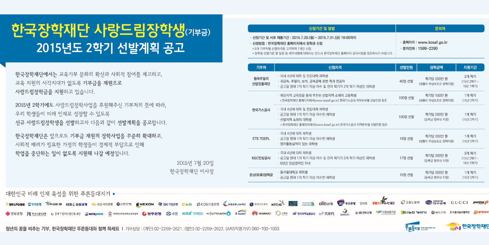 | 663 | 장학 | 학생지원팀 | 2015-07-21 | ||