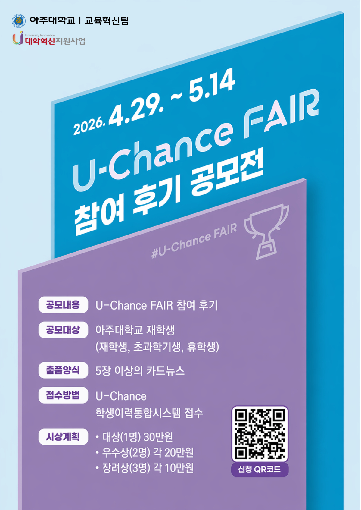 4월 29일, 30일에 예정된 [U-Chance Fair - 전공·진로박람회]의 참여 후기 공모전이 진행될 예정입니다!