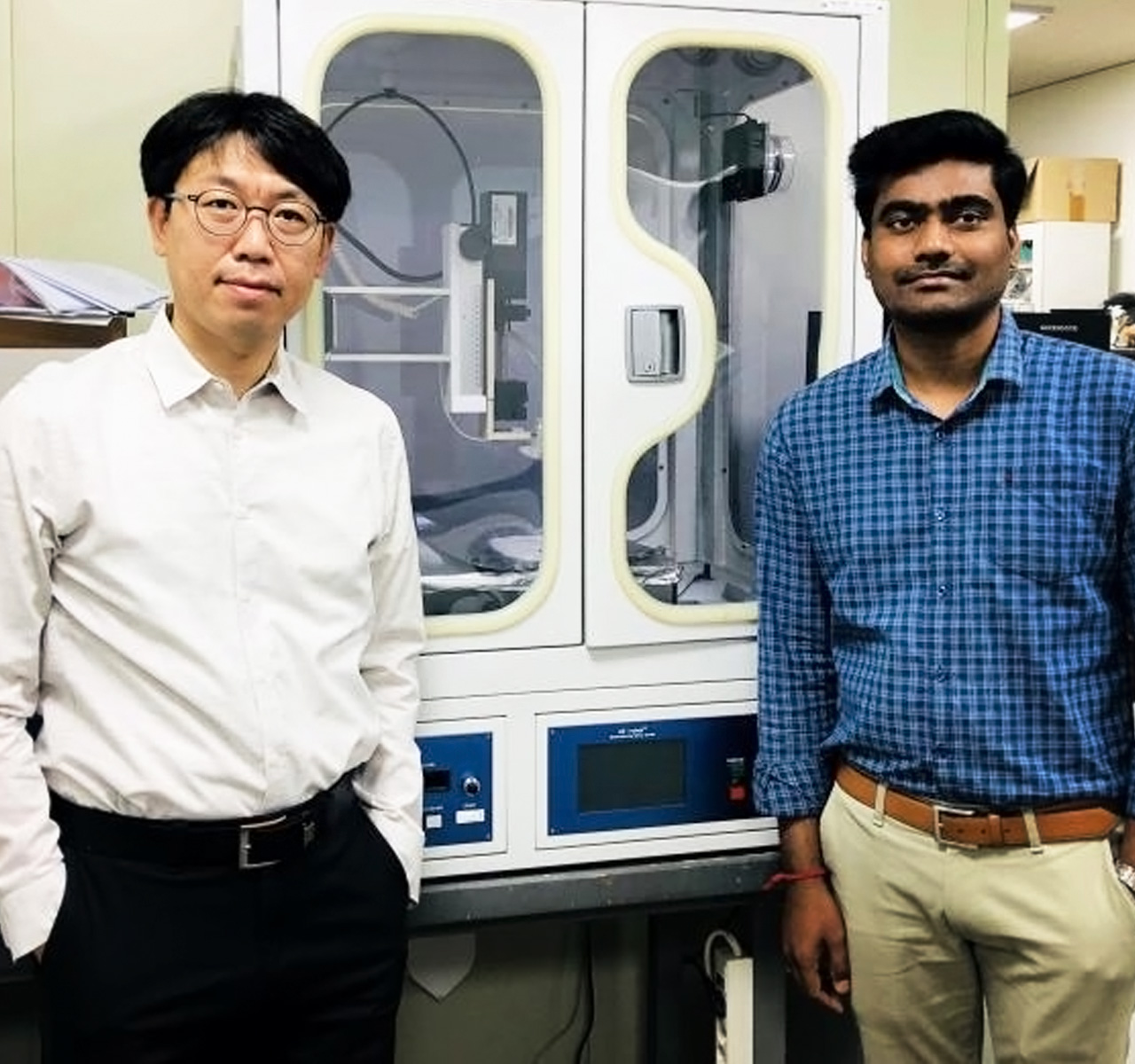 아주대와 팬옵틱스 공동 연구팀이 실크 단백질 나노섬유를 활용해 다기능 전자문신을 구현하는 데 성공했다. 이에 원하는 회로를 그려 넣은 후 굴곡진 피부 조직에 부착, 진단 및 약물 전달용으로 활용할 수 있는 차세대 헬스케어 소자로 이용될 전망이다.우리 학교 김성환 교수(물리학과·대학원 에너지시스템학과, 사진 왼쪽)는 실크 단백질 나노섬유 위에 탄소나노섬유 잉크로 회로를 그려 넣는 방식의 전자문신 구현에 성공했다고 밝혔다. 이번 연구 성과는 신소재 분야 최고 권위지 중 하나인 <어드밴스드 머트리얼즈(Advanced Materials)> 권두 표지논문(Frontispiece)으로 5월6일 자에 온라인 게재됐다. 논문 제목은 ‘피부 위 진단 및 치료응용을 위한 다기능, 극박 전자문신(Multifunctional and Ultrathin Electronic Tattoo for On-Skin Diagnostic and Therapeutic Applications)’이다. 이번 연구는 광학 전문 기업 팬옵틱스와의 산학협력 연구를 통해 진행됐다. 제1저자로 우리 학교 나렌다 고굴라 BK연구 조교수(사진 오른쪽), 공동저자로 팬옵틱스의 김장선 대표이사 외 3인이 참여하였다. 최근 전 세계적으로 인체 조직에 부착 가능한 차세대 헬스케어용 전자 소자에 대한 연구가 매우 활발하다. 생체 신호를 직접 읽어 들이고 분석할 수 있는 덕분. 이러한 헬스케어용 전자 소자를 구현하기 위해서는 실제 생체 조직과 같이 유연하고 잘 늘어나는 전자 소자가 필요하다. 이에 많은 연구자들이 유연 기판에 전극과 전자 소자를 집적, 다양한 인체 신호를 읽고 분석하는 소자를 개발해왔다. 이러한 형태의 소자는 ‘피부를 인공적으로 모방한 전자 소자’라는 개념으로 해석되어 ‘전자 피부’라 불린다.이렇게 개발된 전자 피부와 실제 인체 피부와의 완벽한 인터페이스를 위해서는 지문을 비롯한 굴곡진 표면을 따라 부착할 수 있어야 하며, 생체 적합성도 중요하게 고려해야 한다. 따라서 전자 회로를 생체적합 물질을 사용해 매우 얇게 구현해야 하는 어려움이 존재해왔다. 이에 김성환 교수 공동 연구팀은 천연 실크 단백질에 주목했다. 누에고치에서 나온 실크 단백질은 생체친화적이고 물리적·화학적 물성이 우수해 활용 가능성이 높은 바이오 고분자 소재다.먼저 연구진은 전기방사 방법을 활용하여 인간 머리카락 50분의 1 두께의 실크 나노섬유 종이를 제작했다. 여기에 탄소 나노섬유 잉크를 활용, 붓으로 실크 나노섬유 종이에 원하는 모양의 회로를 그려 넣었다. 잉크가 마르면서 그린 모양대로 회로가 떨어져 나오고, 이를 문신 스티커처럼 물을 살짝 묻힌 피부에 올려놓기만 하면 전자문신을 형성하는 것이 가능하다. 이렇게 만든 전자문신은 두께가 매우 얇아서 지문처럼 촘촘하게 주름진 표면에도 올릴 수 있으며, 샤워를 제외한 여타 일상 생활 속에서도 안정적으로 전기적 특성을 유지할 수 있다. 전자문신의 사용을 마치면 물티슈 등으로 가볍게 닦아내면 되기에 관리도 쉽다. 탄소 나노섬유에서 기인할 수 있는 유해성은 전자문신 중간에 삽입된 실크 나노섬유가 차단해 준다. 피부에 부착한 전자문신은 심전도와 근전도 검사를 위한 전극으로, 혹은 온열 치료나 약물 전달을 위한 패치로 응용이 가능하다. 전자문신에 약한 전류를 흘려주거나 빛을 쬐어주면 탄소 나노섬유에 의해 열을 발생시킬 수 있다. 특히 빛을 활용할 수 있다는 점은 원격으로 전자문신을 데울 수 있음을 의미하고, 이는 응용 범위가 매우 넓다는 것으로 해석할 수 있다. 실크 단백질에 원하는 약물을 탑재할 수도 있어, 원격으로 문신 온도를 조절하여 약물 전달 효율을 조율할 수 있다. 김성환 교수는 “인체 피부에 전자회로를 집적하려는 연구는 많은 진전을 이루어 왔지만 생체 적합성 및 생체 조직과의 인터페이스 문제는 상대적으로 간과되어 온 측면이 있다”며 “생체 물질인 단백질을 활용해 생체 조직과 전자 소자의 상이한 물성 차이를 극복할 인터페이스를 제공할 수 있다”고 말했다.김 교수는 이어 “이번에 개발한 소재 기술은 바이오 소재들이 전자 소자 구현에도 적용될 수 있음을 보여줬다는 데 의의가 있다”며 “앞으로 다양한 헬스케어 소자와 소프트 로보틱스 분야에 적용할 수 있을 것”이라고 덧붙였다. 이번 연구는 한국연구재단 주관 중견연구자지원사업, BK21 Four 사업과 경기도 주관 지역협력연구센터사업(GRRC), 한국에너지기술평가원 주관 에너지인력양성 사업의 지원으로 수행되었다. 관련 기술은 팬옵틱스와의 산학협력 연구를 통해 개발되었으며, 국내 특허 출원과 함께 일부 기술이전 되었다. <연구 개념을 보여주는 모식도. 누에고치로부터 만들어진 실크 종이에 전도성 잉크로 전자회로를 그린 후 문신처럼 피부에 부착할 수 있다>
