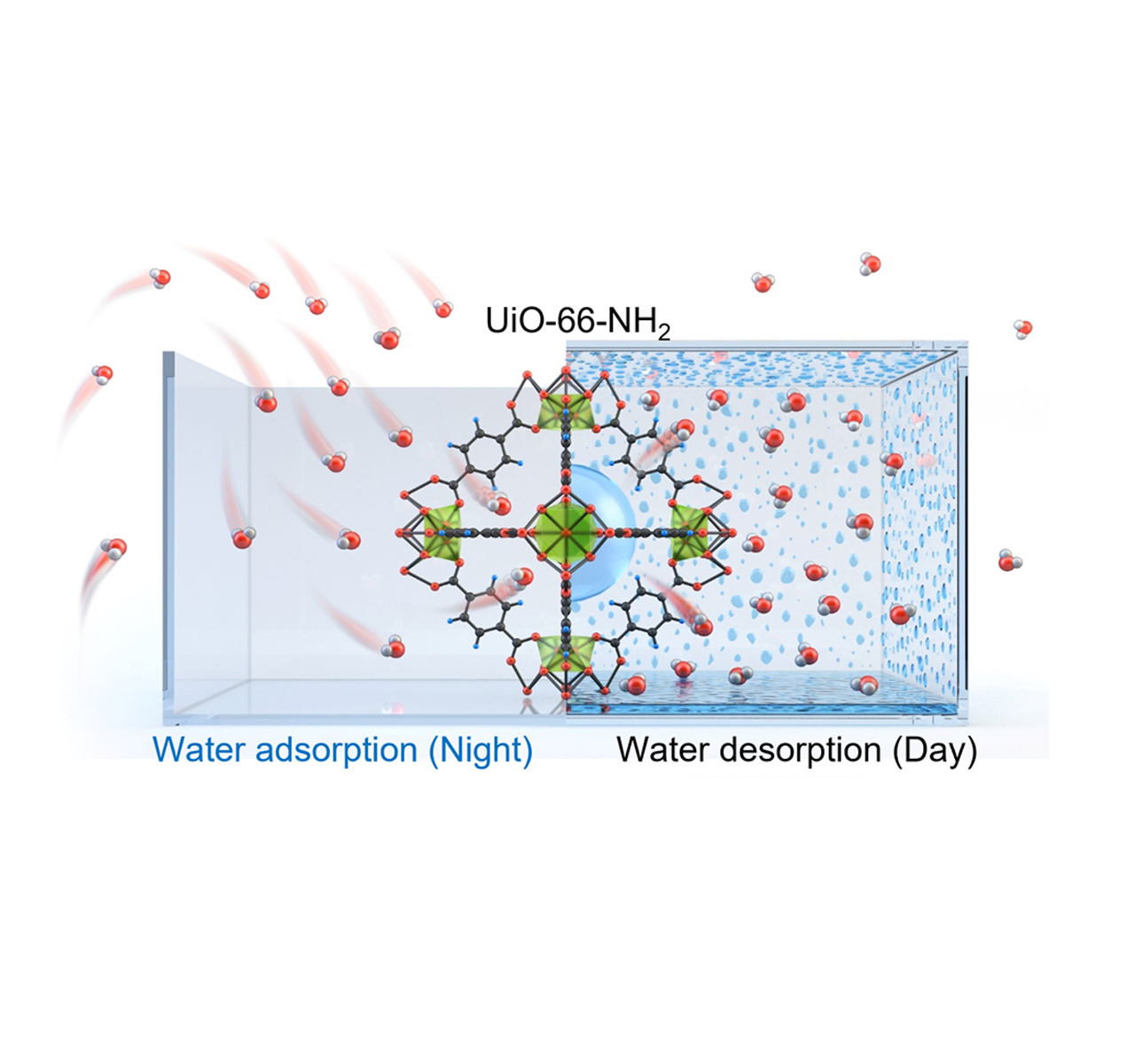 (사진) 에너지 생성 시스템 및 메커니즘 개략도_(a) 일교차에 의한 물 순환을 통해 구동되는 자율 전기 에너지 하베스팅 시스템 (b) UiO-66-NH₂를 이용한 물 수확 메커니즘 (c) Ni3(HITP)2를 이용한 전기 에너지 생성 메커니즘 (d) 주변 환경 조건에서 자율 물 수확 및 지속 가능한 전기 에너지 생성 시스템낮과 밤의 일교차를 활용하여 공기 중 수분을 모으고 이를 전기에너지로 바꾸는 기술이 국내 연구진에 의해 개발됐다. 아주대 윤태광(응용화학생명공학과) 교수와 한국생산기술연구원(생기원) 윤기로 수석연구원 공동 연구팀은 오지나 물이 부족한 사막 등 극한 환경에서도 외부 물 공급 없이 스스로 전력을 생산할 수 있는 신개념 에너지 하베스팅 시스템을 선보였다. 이번 연구 성과는 국제 저명 학술지 'Composites Part B: Engineering (JCR 상위 1%)'에 'Sustainable electrical energy harvesting via atmospheric water collection using dual-MOF systems'라는 제목으로 게재됐다. 제1저자로는 이지현(한양대 석박통합과정), 김동연 (KAIST 박사과정), 이용균(아주대 석사과정) 학생이, 공동 교신저자로는 아주대 윤태광 교수와 생기원 윤기로 수석연구원이 참여했다.기존의 물 기반 에너지 하베스팅 기술은 '젖은 면과 마른 면의 전위차'를 활용해 전기를 생산했지만, 항상 외부에서 물을 공급해줘야 하는 한계가 있었다. 연구팀은 이러한 한계를 극복하기 위해 식물의 증산작용과 모세관 현상에서 착안, 두 종류의 금속-유기 구조체(MOF)인 UiO-66-NH2와 Ni3(HITP)2를 결합했다. 이를 통해 대기 중 수분을 스스로 모아 전기를 발생시키는 완전 자율형 시스템을 구현했다.UiO-66-NH2는 밤의 차가운 공기에서 수분을 흡수하고, 낮의 더운 공기에서 흡수한 수분을 방출한다. 방출된 수분은 Ni3(HITP)2가 성장된 섬유 표면에 응축되며, 이때 섬유의 비대칭적인 젖음으로 인해 전위차가 발생하고 전기가 흐르게 된다. 이 과정을 통해 연구팀은 최대 전력밀도 2.6μW/cm3, 에너지 밀도 1.1mJ/cm3를 달성하는 데 성공했다.특히 UiO-66-NH2는 일반적인 환경은 물론 저습 환경에서도 뛰어난 수분 흡탈착 성능을 보여 다양한 환경에 적용할 수 있는 가능성을 열었다. 연구진은 사막, 해안, 내륙 등 실제 기후 환경을 모사한 실험을 통해 각 환경에서 자가 수분 생성 및 전기에너지 생산 기능이 안정적으로 작동함을 입증하기도 했다.윤태광 교수는 “이번 연구는 외부 전력이나 물 공급 없이도 작동 가능한 자립형 에너지 하베스팅 시스템의 실현 가능성을 보여준다”며, “향후 재난 현장이나 에너지 접근성이 낮은 지역에서 새로운 대안이 될 수 있길 기대한다”고 밝혔다. 윤기로 수석연구원은 “이번 시스템은 극한 기후나 인프라가 부족한 지역에서도 손쉽게 전기를 얻을 수 있는 기술적 기반을 마련한 것”이라며, “탄소중립 사회를 향한 지속 가능한 에너지 기술의 실질적 기여로 이어지길 바란다”고 전했다.이번 연구는 한국연구재단의 ‘해외우수연구기관 협력허브 구축사업’의 지원을 받아 수행되었다.[에너지하베스팅(Energy Harvesting : 자연적인 에너지(태양광, 진동, 열, 바람, 파도 등) 또는 일상생활에서 버려지는 에너지를 수집하여 전기에너지로 재상산하는 기술)뒷줄 왼쪽부터 시계 방향으로 아주대 윤태광 교수, KAIST 김동연 연구원, 생기원 윤기로 수석연구원, 아주대 이용균 연구원, 한양대 이지현 연구원