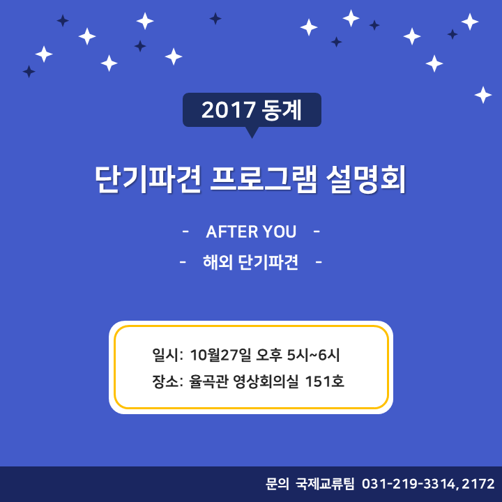 | 203 | Outgoing | 국제교류팀 | 2017-10-28 | ||