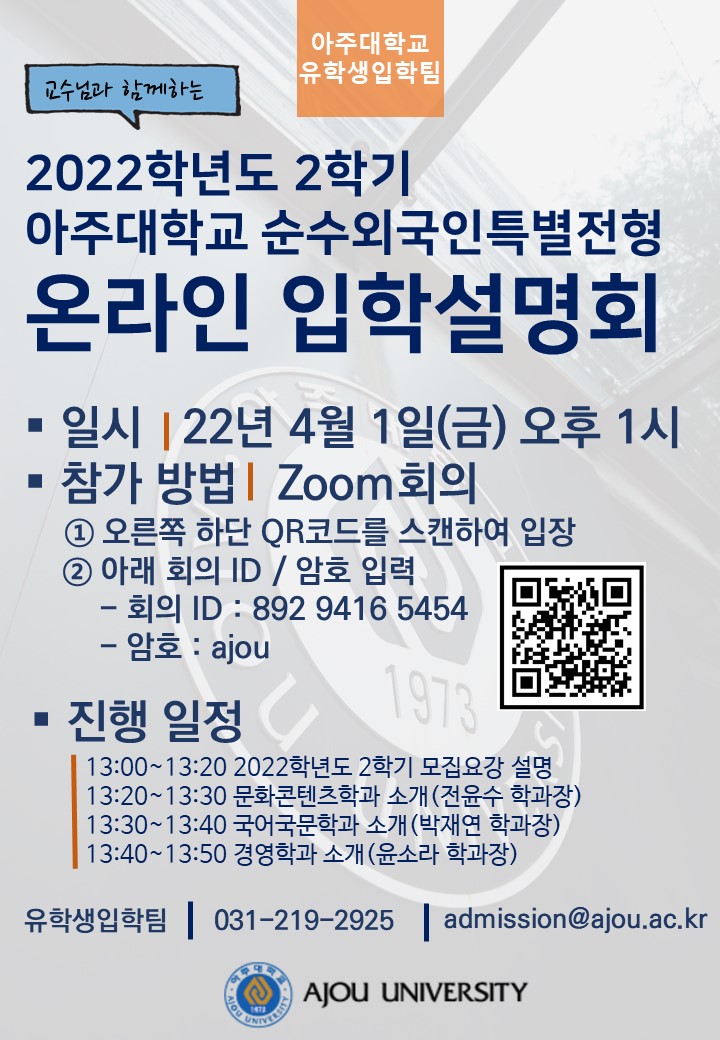 [Admission] [유학생입학팀] 2022-2 순수외국인 특별전형 온라인 입학설명회